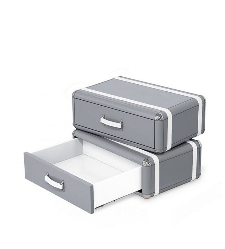 Circu’s Sky Nightstand adds sophistication and a luxurious vibe to the decor. The Sky Nightstand is a kids’ small chest of drawers inspired by the Disney movie “Planes” and it is the perfect storage item for your aviation inspired bedroom decoration. With a creative and playful design, the Sky Nightstand is inspired by vintage travel suitcases to reinforce the connection between children and exploring. It features 2 drawers and the decorative suitcases are piled up to provide extra storage. Built-in wood, lacquered in glossy grey, with details in synthetic leather and nickel finishes.